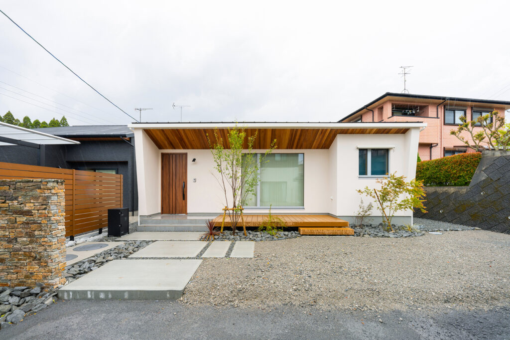 グレーの塗り壁と木の質感が上品なデザインに仕上がったコンパクトなお家は、オーナーさんの思いをギュッと詰め込んだ見た目以上の秘密が沢山詰まった注文住宅の平屋になります。
